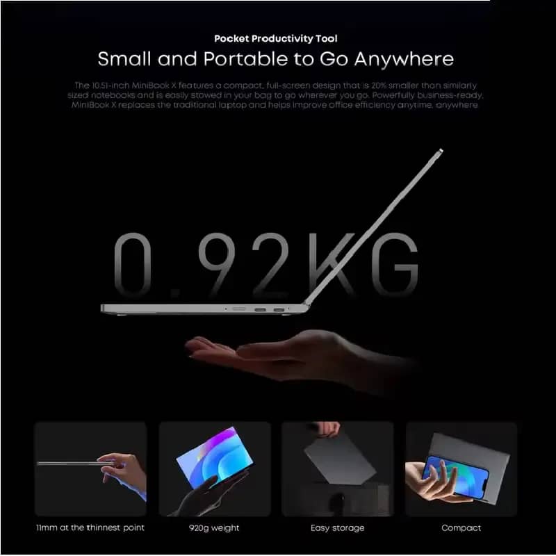 Temukan keunggulan CHUWI MiniBook X N150, laptop 2-in-1 ultralight yang dirancang untuk memenuhi kebutuhan profesional dan pelajar. Dengan desain fleksibel 360 derajat, perangkat ini dapat dilipat menjadi mode tablet, tenda, atau layar datar—sempurna untuk bekerja, belajar, dan hiburan.