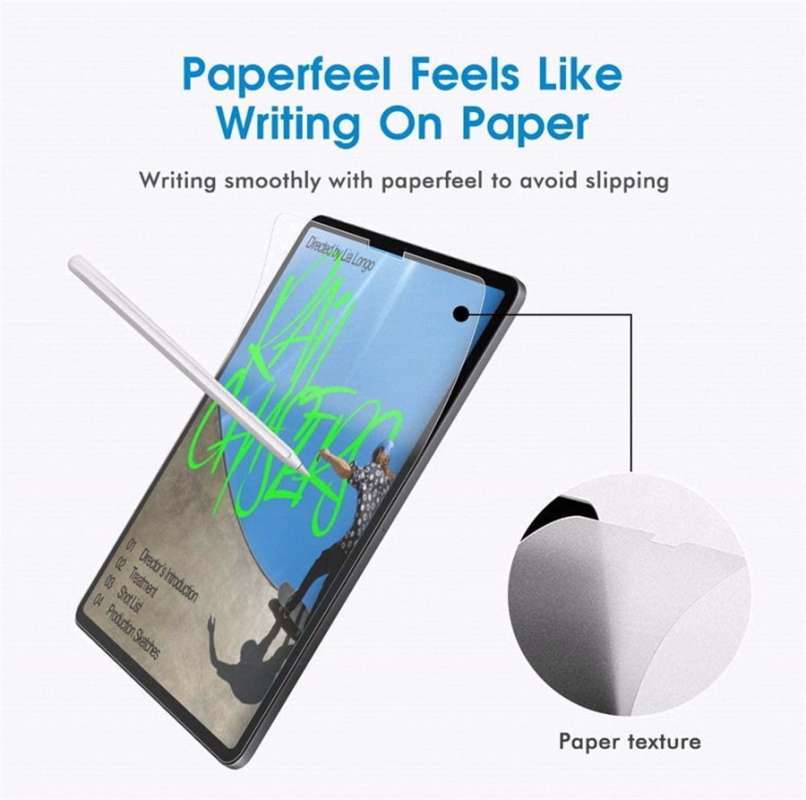 Material: Dibuat dari PET Matte Premium, memberikan sensasi tekstur kertas yang nyaman untuk menulis dan menggambar. Kesesuaian: Tepat untuk model iPad Air Gen 4 (A2316, A2324, A2325, A2072) dan Gen 5 (A2588, A2589, A2591), memastikan kompatibilitas sempurna. Fungsi: Anti Fingerprint, Anti Glare, dan Anti-skid, menjaga layar tetap bersih dan bebas refleksi serta memudahkan kontrol saat memakai stylus. Ketahanan: Dilapisi dengan perlindungan 3H anti gores, memastikan durabilitas dan ketahanan terhadap goresan sehari-hari. Dimensi: Kompak dan ringan dengan ukuran 28cm x 21cm x 1cm, serta berat hanya 70 gram.