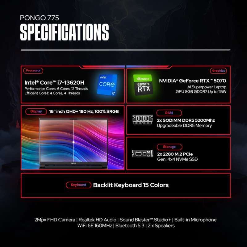 Segarkan gaya gaming Anda dengan AXIOO PONGO 775, solusi tepat untuk kebutuhan teknologi masa kini. Sempurna untuk mereka yang mencari laptop dengan performa tanpa kompromi dan fitur unggulan.