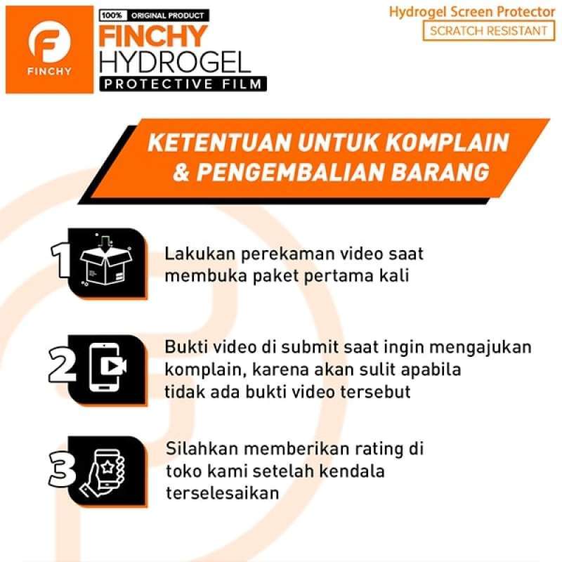 | Kelengkapan Paket | 1x FINCHY Hydrogel 1x Tissue Wipes 1x Sticker Dust-Absorber 1x Microfiber Cloth 1x Swipe Card ( Alat Bantu Pasang Hydrogel ) |