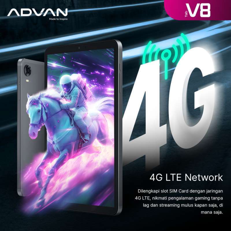 Aplikasi Android 14 terbaru memperkaya fitur Tab V8, sementara konektivitas jaringan GSM, HSPA, dan LTE meningkatkan fleksibilitas online Anda. Dengan dual nano SIM card dan speaker stereo, nikmati pengalaman yang lebih dari sekadar tablet. Miliki Advan Tab V8 dan rasakan inovasi dalam genggaman tangan Anda.