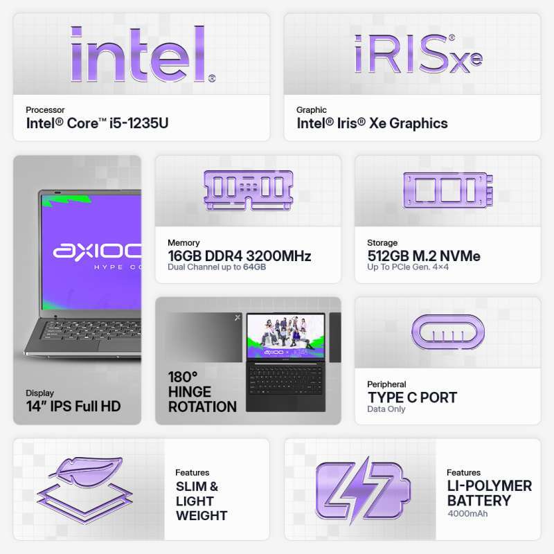 Axioo MyBook Hype 5 G12 with Intel i5 Gen 12, 16GB DDR4, and 512GB SSD Storage, Features FHD IPS Display for Students and Professionals
