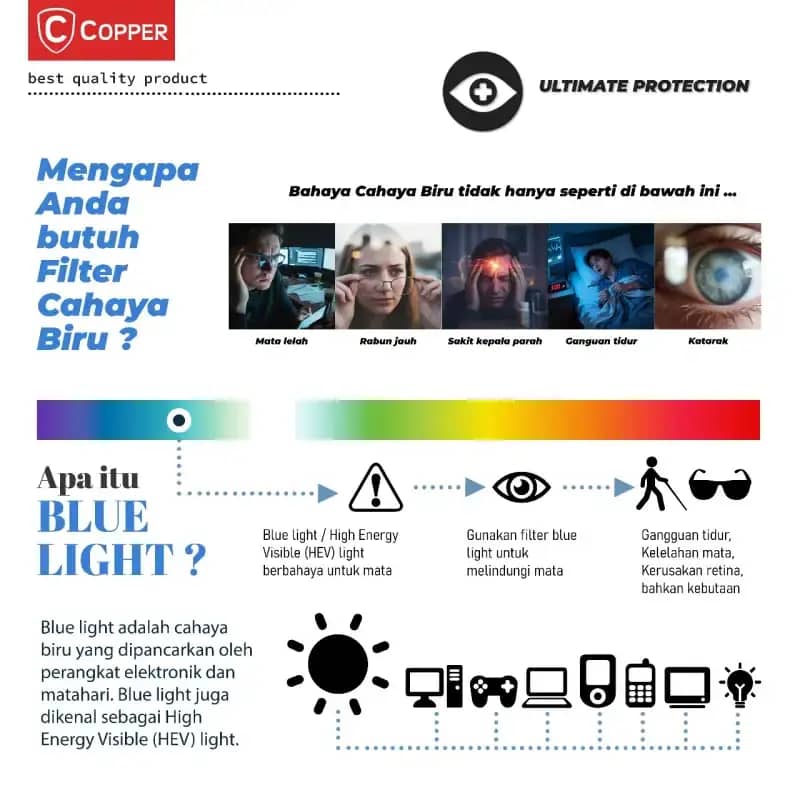 Perlindungan Mata: Lapisan Anti-Blueray melindungi mata dari cahaya biru berbahaya, memberikan pengalaman menonton yang nyaman dan membantu tidur nyenyak.