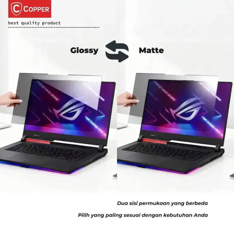 Dual Permukaan: Pilih antara permukaan Matte yang meminimalisasi sidik jari dan pantulan, atau sisi Glossy untuk tampilan layar lebih jernih sesuai kebutuhan.