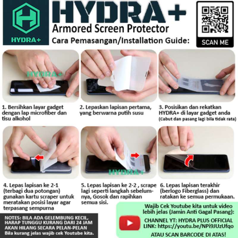 Tingkatkan perlindungan layar Anda dengan solusi canggih HYDRA+. Untuk pertanyaan lebih lanjut atau pemesanan khusus, hubungi kami. Bubbles kecil? Diamkan sejenak, akan hilang dengan cepat.